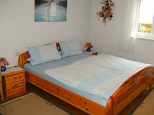 Das Schlafzimmer mit Doppelbett (im Erdgeschoss)