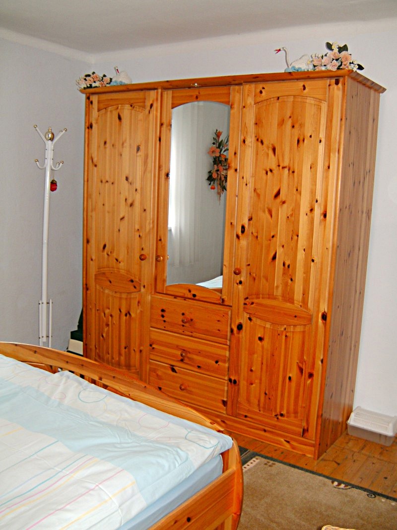 Das Schlafzimmer mit Doppelbett (im Obergeschoss)