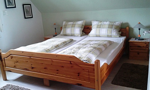 Das Schlafzimmer mit Doppelbett (im Erdgeschoss)