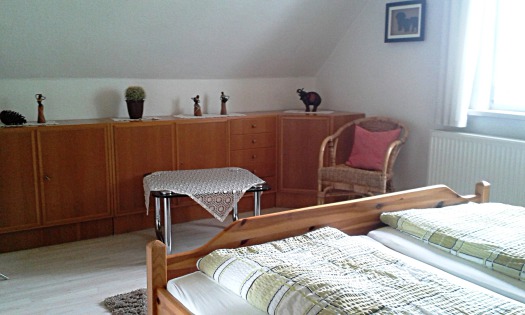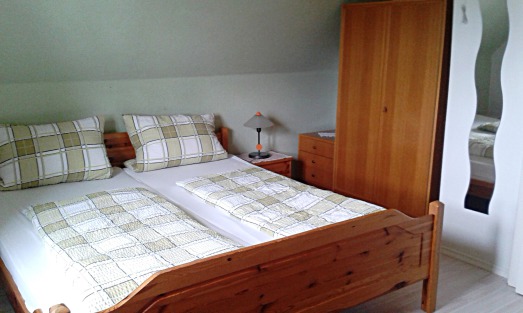 Das Schlafzimmer mit Doppelbett (im Obergeschoss)